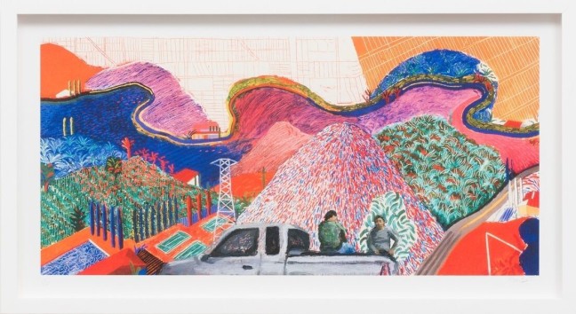 Above: (c) 2015 Ramiro Gomez, “Mulholland Drive: On the Road to David’s Studio (after David Hockney’s Mullholland Drive: The Road to the Studio, 1980)