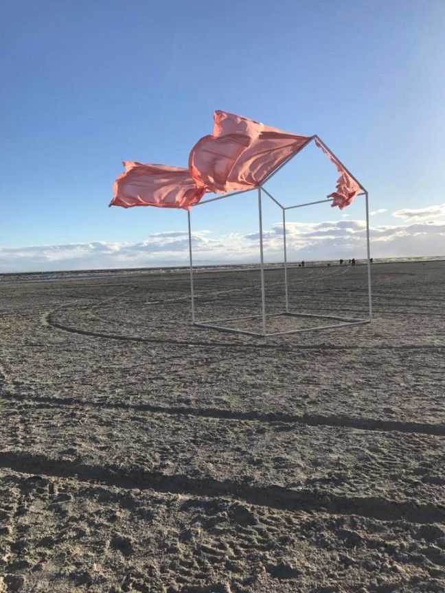 Boemio also makes note of the work of Maria Rebecca Ballestra, and Ryts Monet, of whom she says “The golden surface of Monet’s “Carpet” reflects light, and its chromatic and material element gives the work a precious as well as fragile look. The combination of matter and image evoke a symbol of protection and prayer intrinsic in the work.