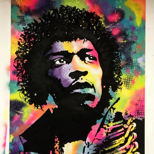 The prolific multi-media artist currently has four main bodies of work: Fallen Legends, a fresh and vibrant tribute to iconic music artists; an abstract series focused on texture, color, and patterns; reimagined musical instruments and music making materials – from boom box to drum kit; and a series of spiritual works, many featuring dazzling images of the hamsa.