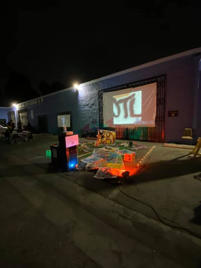 At Musuem Adjacent location, according to Hagop Najarian, “Our concept was to say goodbye to and destroy old things from 2020, so each member from our group made a video of themselves destroying their art work. I made a loop video of all 5 members videos that we palyed all night. The display was a memorial/ graveyard, if you will, of our works.”