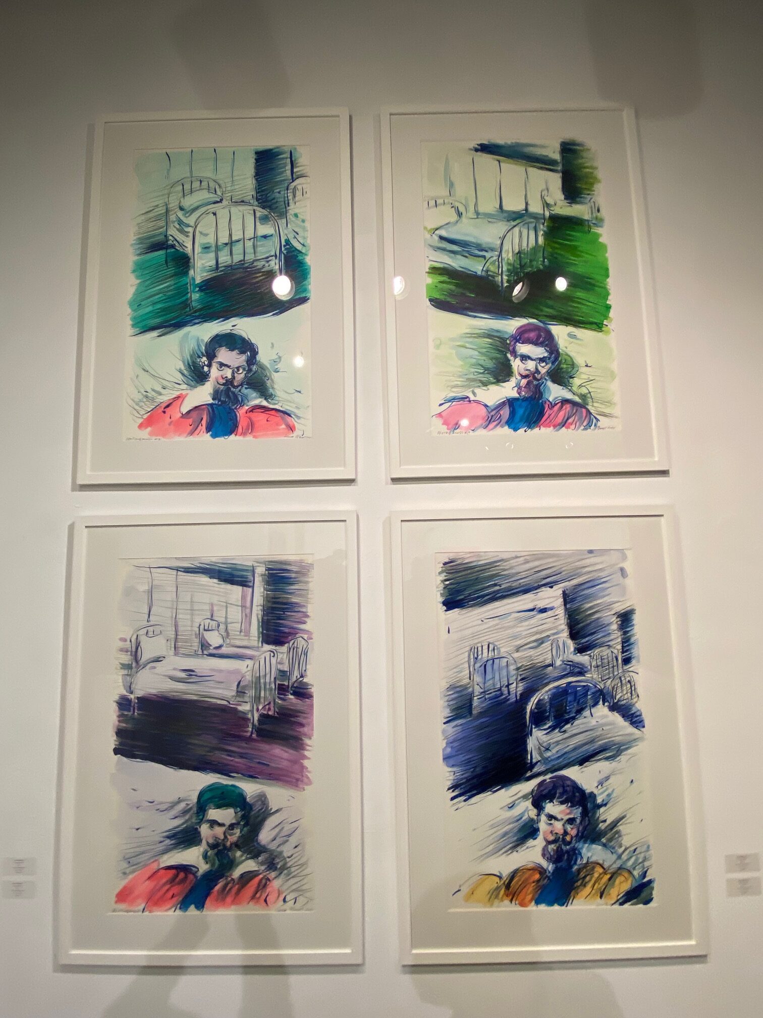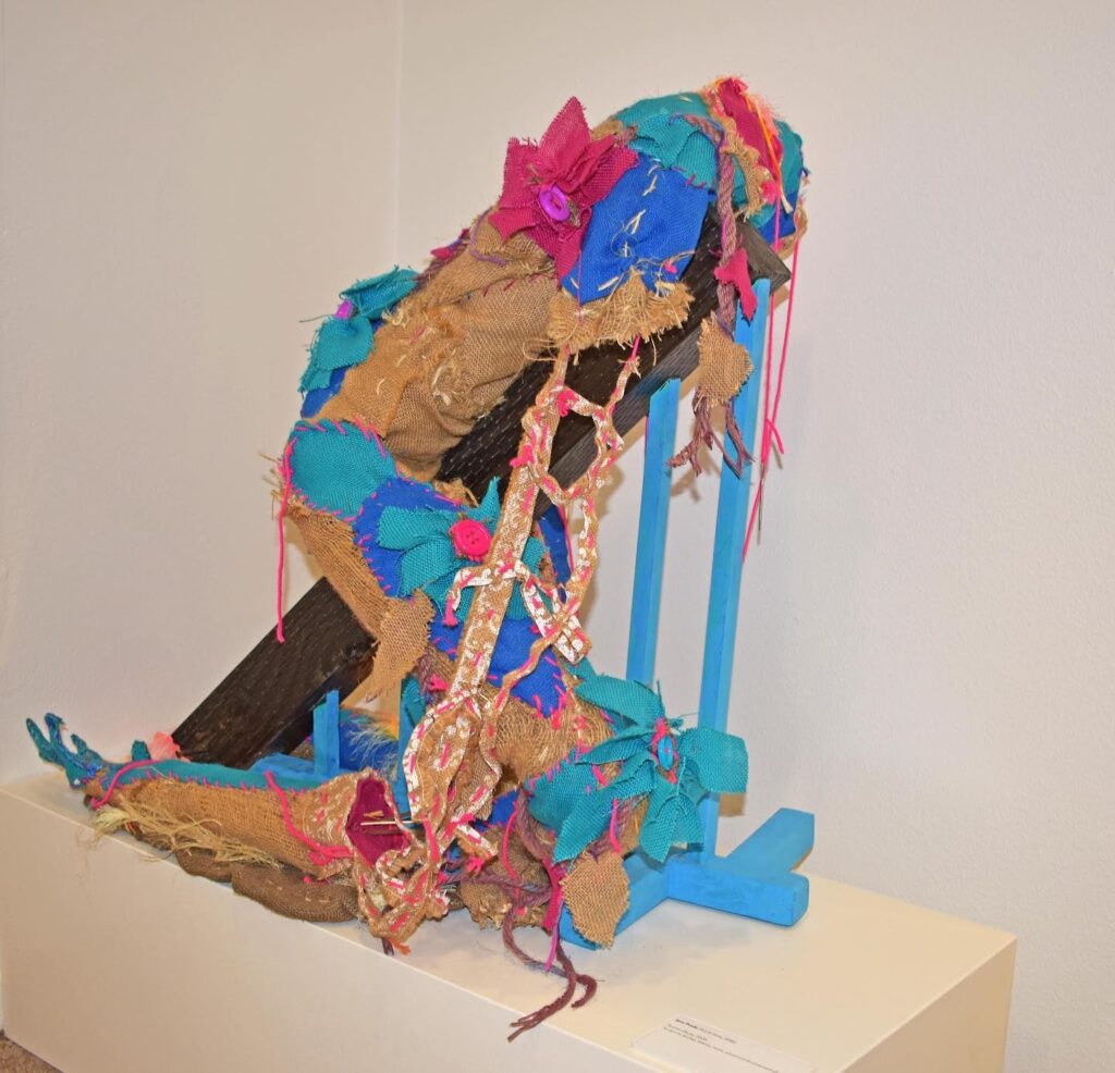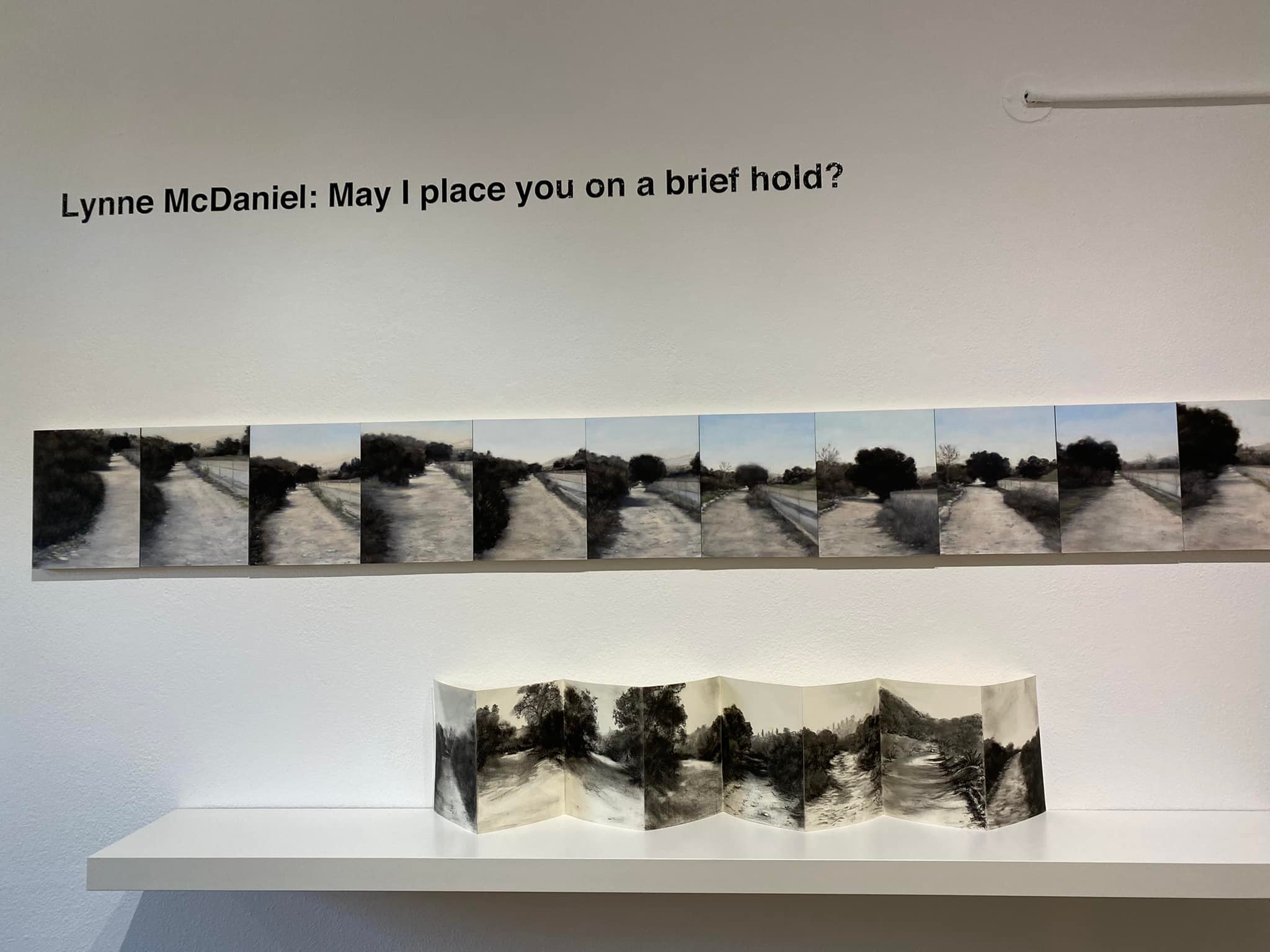 Positioned in the middle gallery space, Lynne McDaniel offers an equally evocative and stunning body of work. Unlike Rick McDaniel’s work glows without vibrant color – or perhaps just a dash of it. McDaniel’s May I Place You on a Brief Hold? flies into a chiaroscuro world, with bold dark and light contrasts creating rich dimension and light.