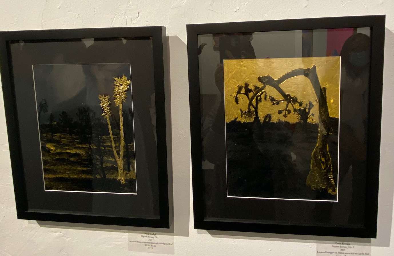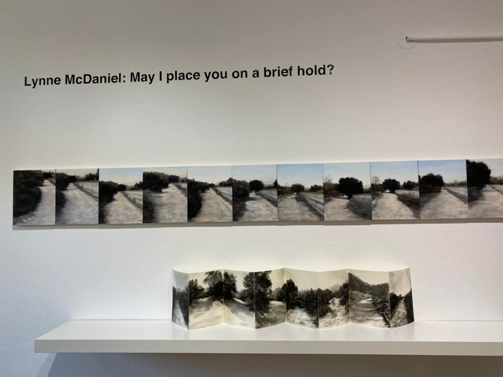 In contrast to these landscapes are McDaniel’s purely delightful images of her expressive black cat in “January/December 2020.” The feline’s gold eyes will rivet you, as does so much of McDaniel’s fine work. Look up above the doorway to be sure not to miss them.