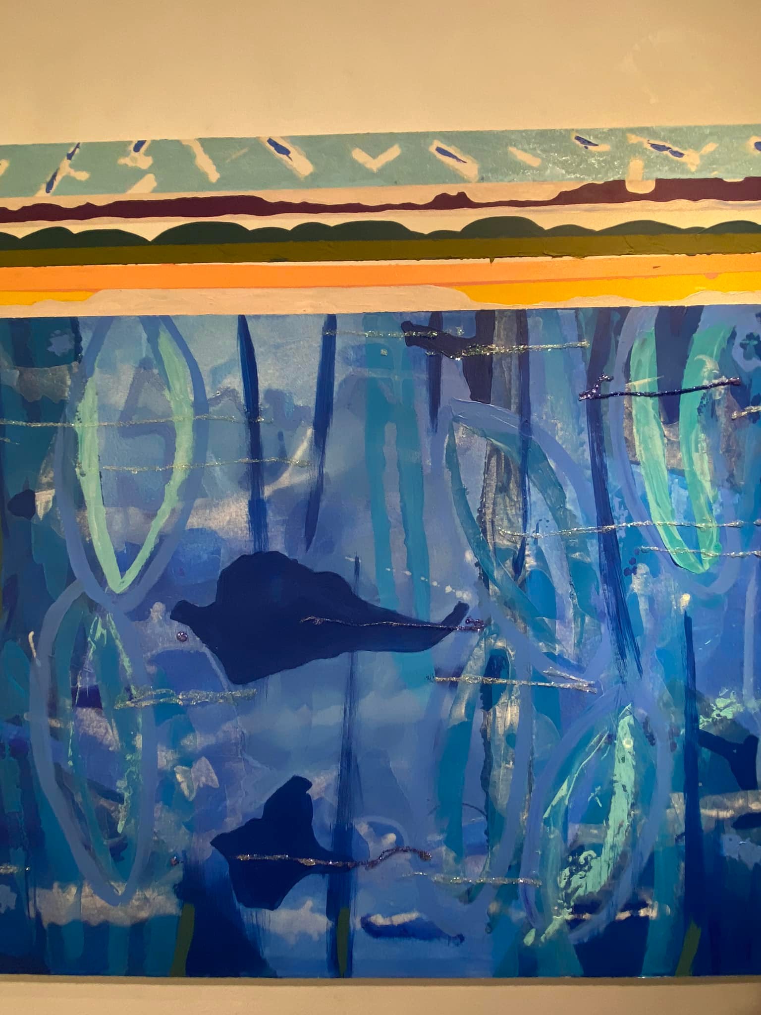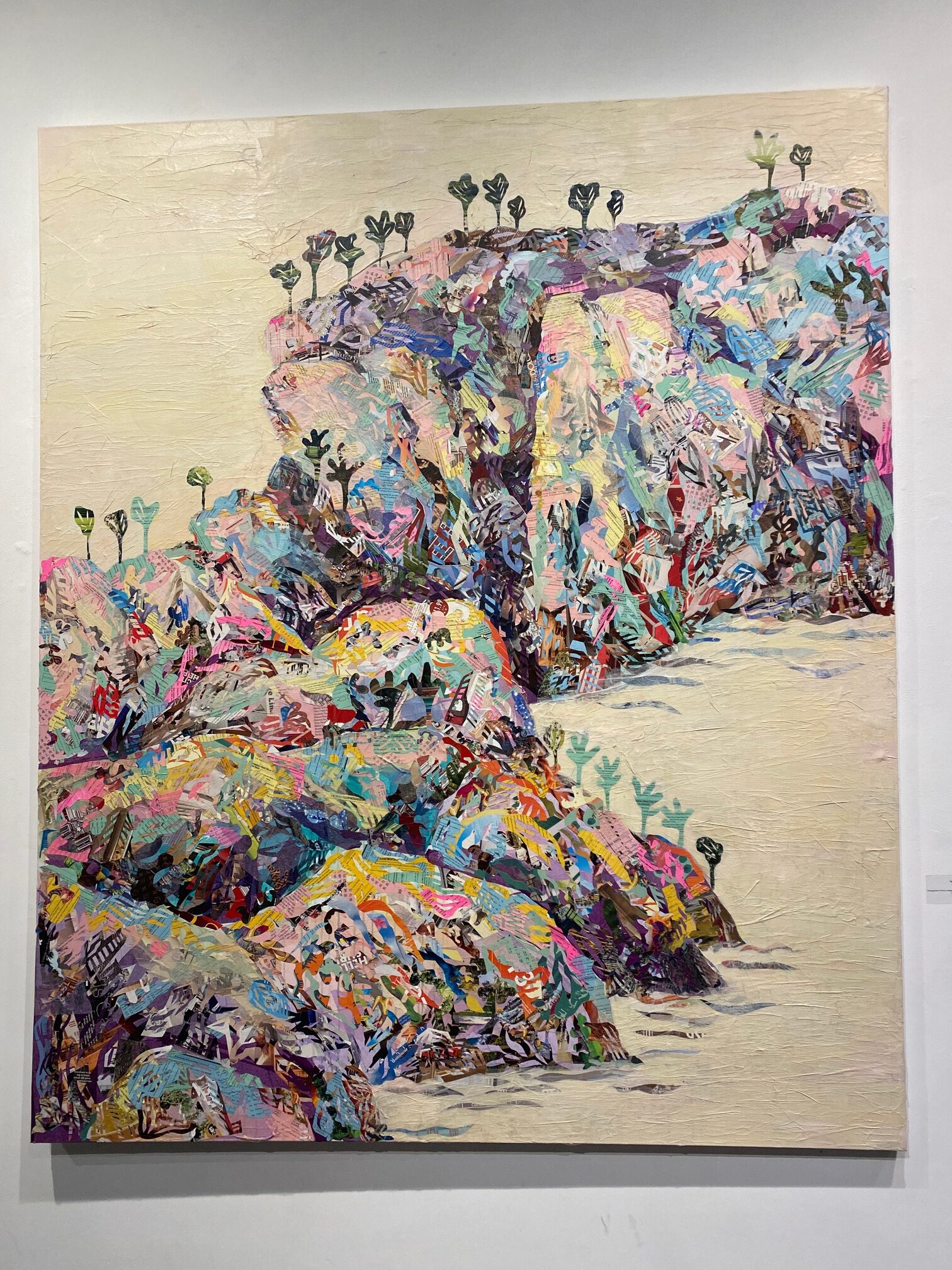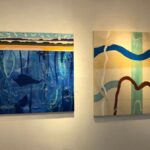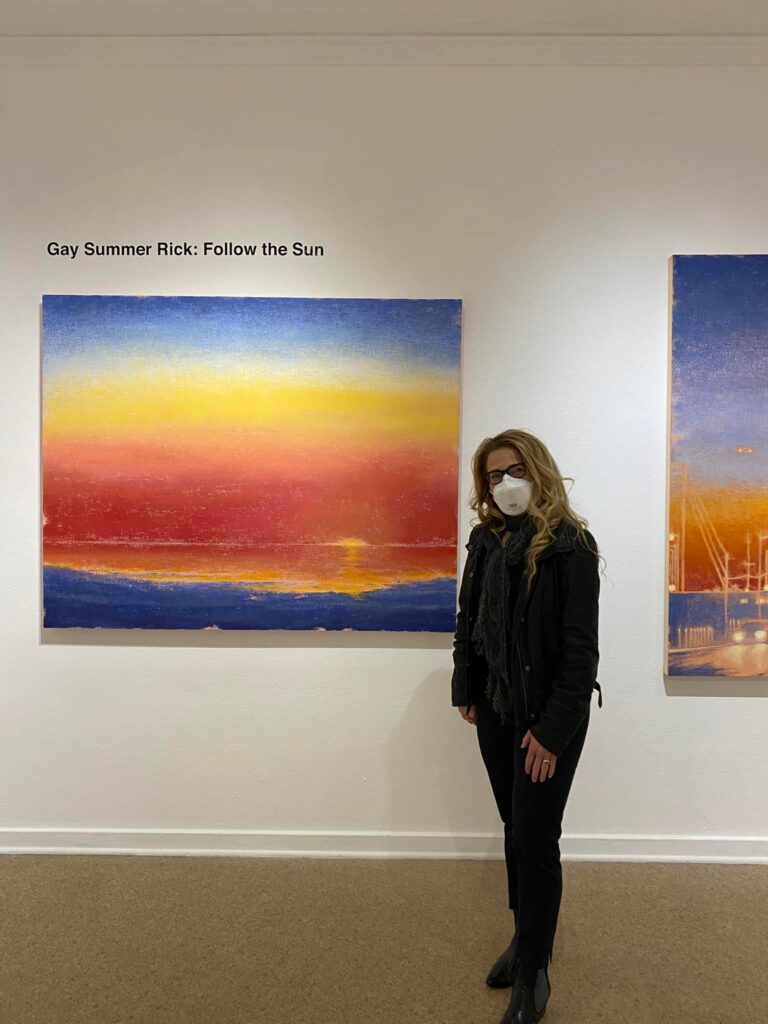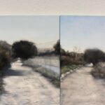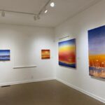 Gay Summer Rick’s evocative Southern California landscapes glow with sunset, sunlight, foggy mornings. A video presentation is a part of the exhibition, explaining in part her painstaking process, as well as the light spectrum that she creates. Her textured, luminous work speaks to sky and shadow, light and air. The viewer could almost float through these images and emerge again bathed in a prolific wash of color and glow. Follow the Sun is as meticulously created as Bonassi’s, but Rick’s work uses a careful application of oil by palette knife.