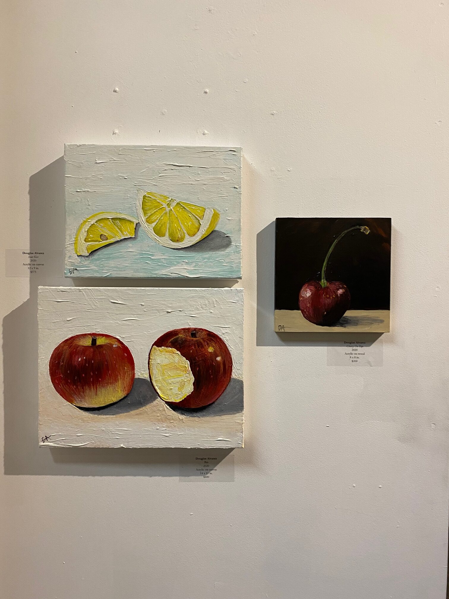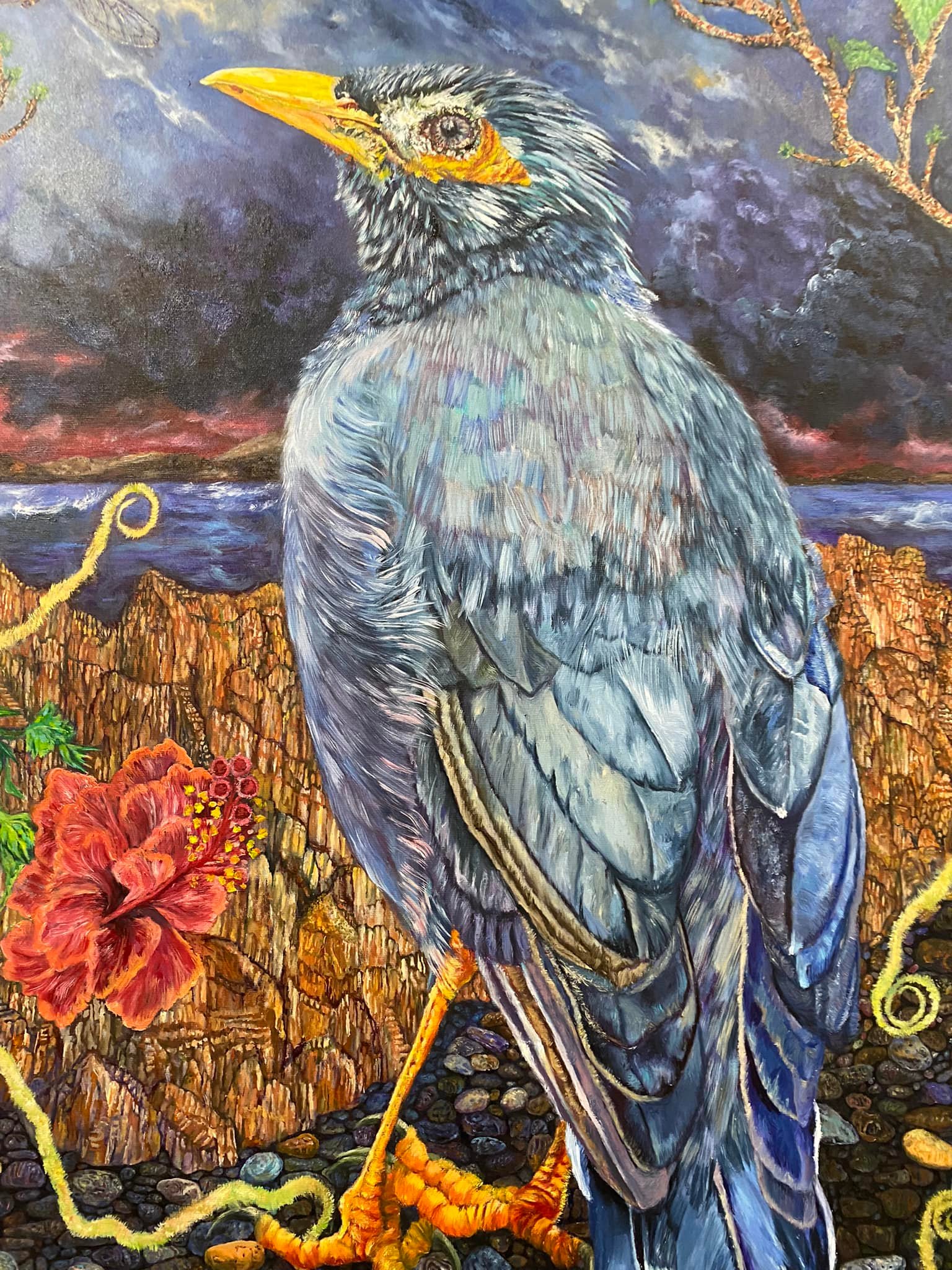 Reviewed in another publication is the third, magnificent solo show now at Cedar, Jodi Bonassi’s gorgeous, color-jewel birds.