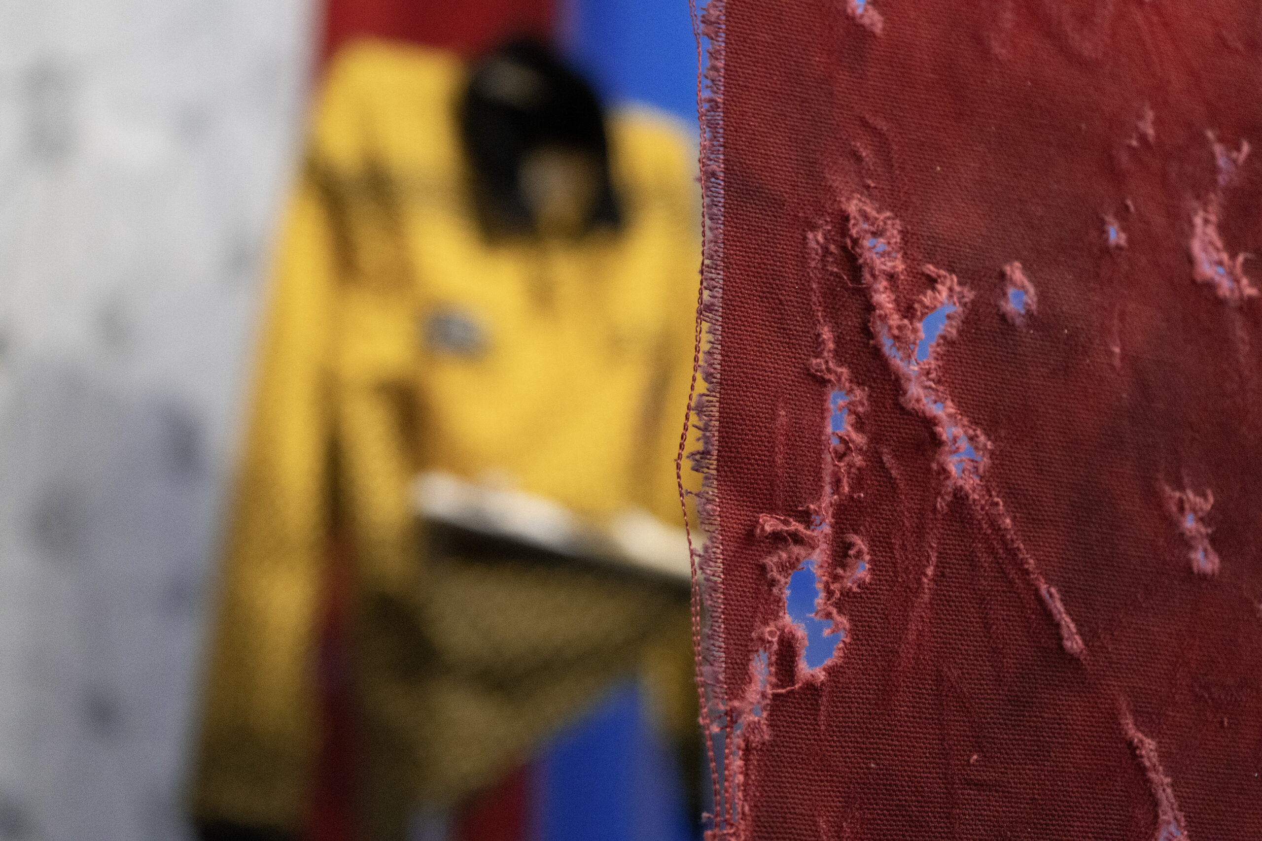 This is exciting, resonant, fascinating work, an exhibition one can breeze through and simply enjoy for the colors, the toys, the embedded collage elements; or one in which you can consider its implications, the fears for humanity, the hope for the future, the joy and the terror that happens on playgrounds, in war, and in life on this planet, in this city, in its lost desert dreamscapes, today.
