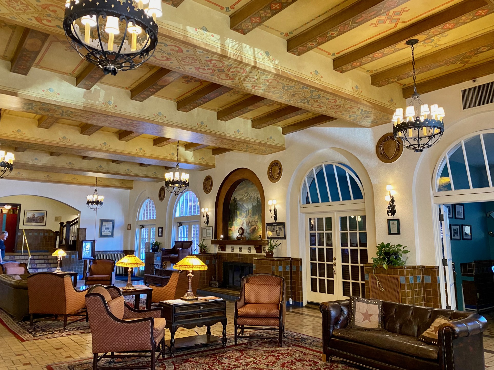 Lovingly cared for, the lobby features a beautiful mural painted over a burnished fireplace, comfortable reading chairs and warmly lit lamps, and best of all, a convivial atmosphere that makes guests feel welcome and then less like guests and more like welcome visitors.