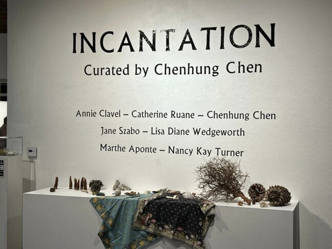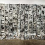 From his “Offerings to ask for forgiveness” series, a large wall work resembles glacial ice, and is also constructed from recycled plastic from food containers collected from trash. He relates that the “ice” is made to “ask for forgiveness for the traces of our civilization…forcing [nature] to arrive to the present.” The exhibition closes November 4th.