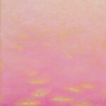 And speaking of sky, in “Lustre” it is difficult to tell where sea and sky meet and merge, as minute golden figures on surfboards float among the waves as if reaching for the sky itself. As with a number of the paintings here, Rick replaces here past preference for blues with pinks, ethereal, hot, or paling like cotton candy dissolving into mist. As peaceful and lush as each work here can be seen, beneath that is a vision that can only be considered emotionally transcendent. The exhibition’s final beautiful day at bG Gallery is November 4th.