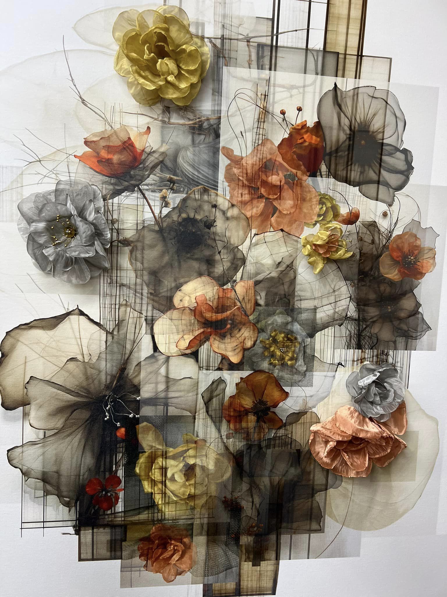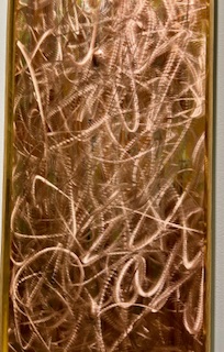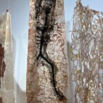 Upstairs, phenomenal works using print making and found objects fill the larger gallery, with the stellar Printmaking with Recycled Materials, a group exhibition by LYNK Collective, curated by Christina Yasmin Fesmire and Jared Millar. Dramatic works utilize everything from fabric to melted plastic; it is a wonderfully dimensional and involving printmaking exhibitions that will exceed your ideas of what print making reveals. Artists include Yeansoo Aum, Elisabeth Beck, Andra Broekelschen, Alexandra Chiara, Christina Yasmin Fesmire, Karen Fiorito, Carole Gelker, Bill Jaros, Nguyen Ly, Diane McLeod, Jared Millar, William Myers, Marina Polic, Francisco Rogido, Olga Ryabtsova, Laura Shapiro, Tracy Loreque Skinner, Mary Lawrence Test, Paula Voss, Zana Zupur and guest artists: Karen Feuer-Schwager, Kim Kei, Wendy Murray, Jackie Nach, MJ Rado, Victor Rosas, Fred Rose, Marianne Sadowski, Jillian Thompson and Katie Thompson-Peer. Ly’s work is particularly mesmerizing.