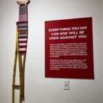 In Gallery 2, the solo exhibition also resonates. “Everything You Say Can and Will Be Used Against You” from artist Brian Singer, uses a variety of sculptural objects to explore and expose our country’s responses to refugees, gentrification, surveillance, and other issues. Singer’s mother was interned during WWII, making both the beauty and the harsh truths behind these artworks as personal as they are potent.