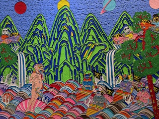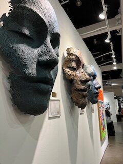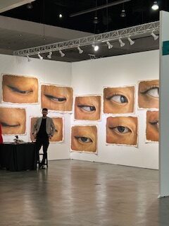 In San Pedro, Angels Gate Cultural Center also has two exhibits, both group shows at this venue. 7 Visions X 7 Artists (above) features new and expansive creative works shaped under the auspices of the MRH Fund for Artists grant. This program follows Southern California artists on a year-long journey expanding their professional artist practice. Well curated by Georgia Freedman-Harvey, works include installations, sculptures, wall art by artists Cesar Garcia, Trinh Mai, Rebekah Mei, Nguyen Ly, Jas Parker, Edwin Vasquez, Patricia Yossen. You can read more about Vasquez’s work here.