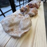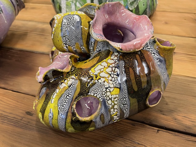 Gueorguieva’s work is delicate and wild, her large scale tapestries a world unto themselves; while Lee’s highly textured sculptures seem to represent animal life morphing into existence.
