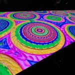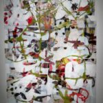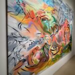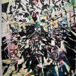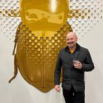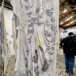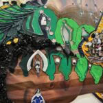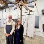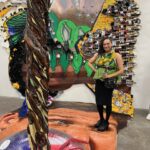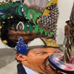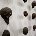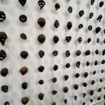 Paiment’s wonderful “Hybrid paint-stallation” yellow bug is as witty as it is cool, while a whimsical windmill flows into the serious with a lovely poetic scroll from Sears and Flewellen. Hawkinson collected avocado skins for five years, cutting them into a variety of facial expressions to create a crazy cool sculptural grid.