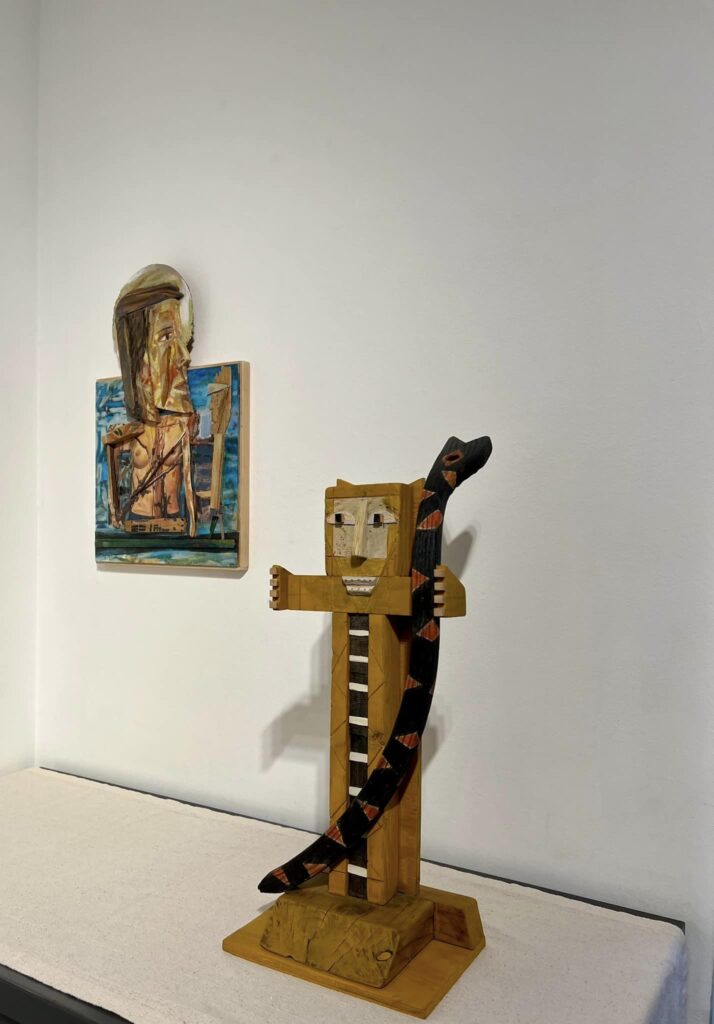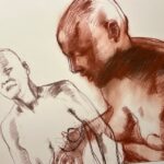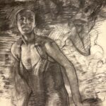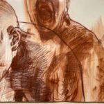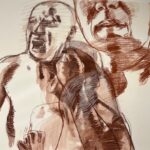 Her epic large-scale multi-figure drawing “Being Ill as a Dance” is reminiscent of Old Masters figure studies with the bald and androgynous nude or nearly nude figures twisting and reaching out into the unknown, much like dancers about to execute a turn. But what is this dance Lazzari alludes to: the dance between health and sickness, between spirituality and science, between anxiety and equilibrium, between darkness and light? Lazzari suggests it’s a mélange of all of these wild swings of emotion that one experiences – a rough roller coaster of ups and downs, twists and turns to navigate.