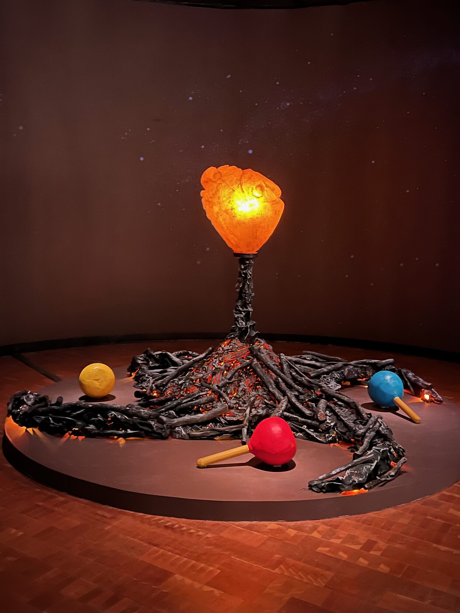The exhibition presents a living history of communities from the past and present as told through a variety of mediums. It introduces the purpose of fire as a generative force and part of a sustainable future as an “elemental relative” creating a cycle of beginnings for all living things.