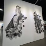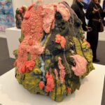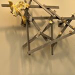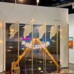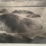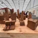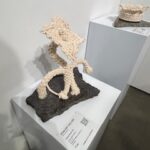 Admittedly my favorite installation is a room sized work by Leah Mata Fragua (yak titYu titYu yak tiłhini, Northern Chumash). The artist reclaims the narrative that the land and its people are intertwined through the use of a multitude of sculptural paper, dyed with poppies, and representing the flowers themselves. There is a small couch in the room on which one can lean back and look at the poppies everywhere in the room, their vast ability to thrive, to astonish, to regrow and regenerate. The installation looks to land stewardship practices that have shaped the region’s landscapes, long before European colonizers arrived in this country. It is a delicate and honestly divine work, uplifting and yet tragic in its fragility, mirroring ,in a way, the fragility of humankind itself, and our ability to regrow and accept alterations to our landscape.