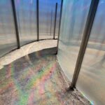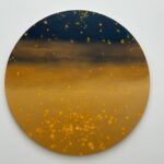 He describes his work here as “a convergence…this work feels like it unlocks everything I’ve been building toward over the last 30 years. When I was first making art during and right after school it was all about color and layering. Then I spent over a decade focused on graphic design and architecture. These paintings feel like a full-circle moment, combining all that experience into something cohesive and personal.”