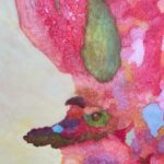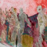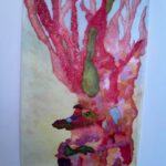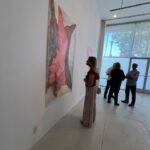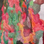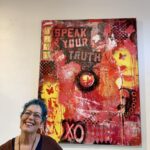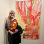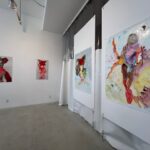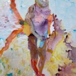 Whether creating lush works that resemble flowers, a bird of bright plumage, or the human form, her mix of abstract and figurative work shapes the alchemic. In another exhibition as part of the BLAM collective which frequently exhibited on Santa Fe Avenue in DTLA, she even made beautiful a depiction of an oil spill clean-up, saying “I’m always painting changes in the environment. I’m trying to show our concern about the environment. ”