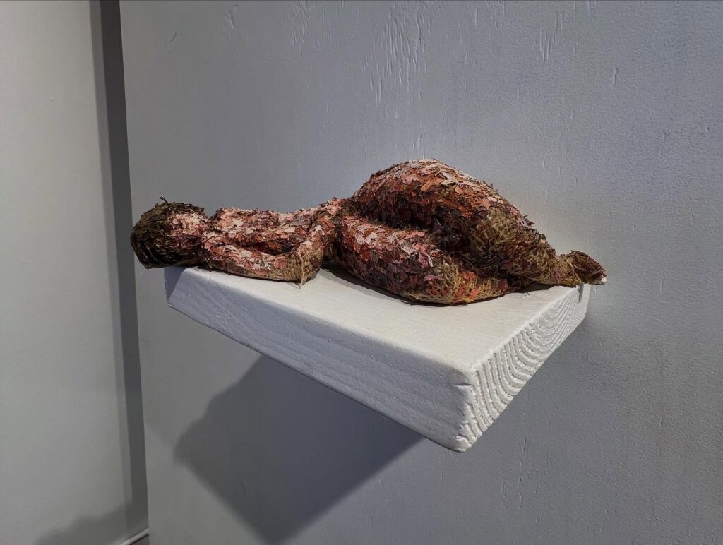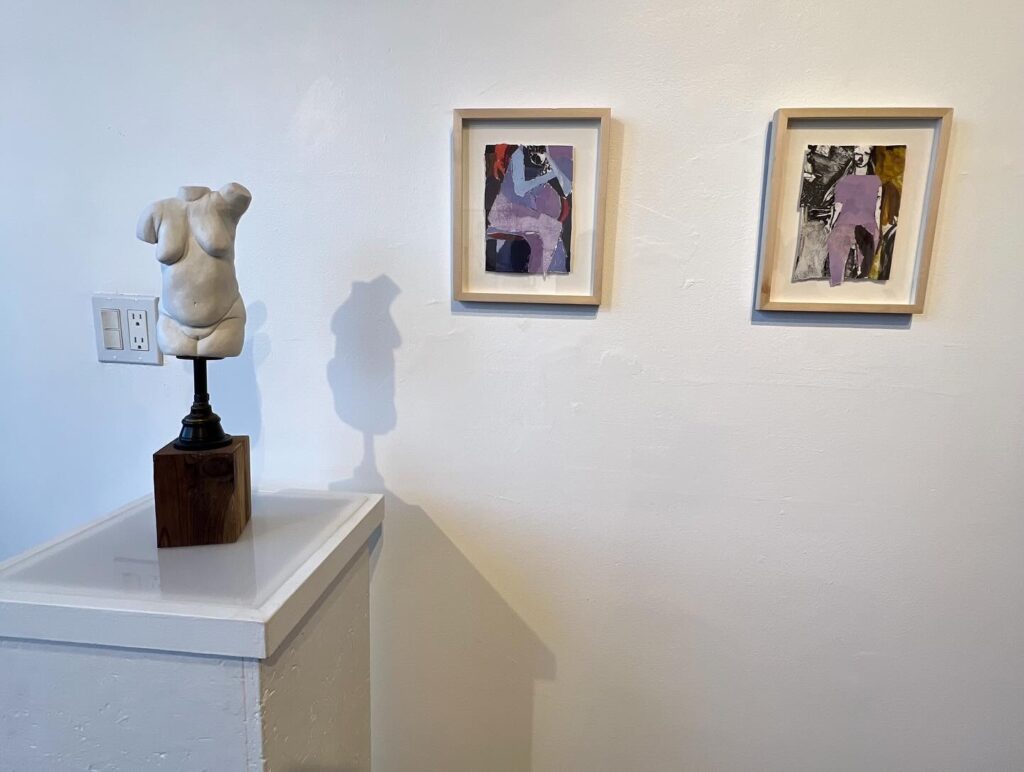 Curated by contributing artist Robin Jack Sarner, the show features work by Kylie Ames, Jackie Leishman, Amy Lyu, Monica Marks, Anjale Perrault, Robin Jack Sarner, Katin Sarner, Kristine Schomaker, and Lynnie Sterba. The wide varieties of mediums presented adds to a sense of heady exploration and meaningful exchange. There are mixed media images, paintings, sculpture, and read aloud at the opening event, even poetry.