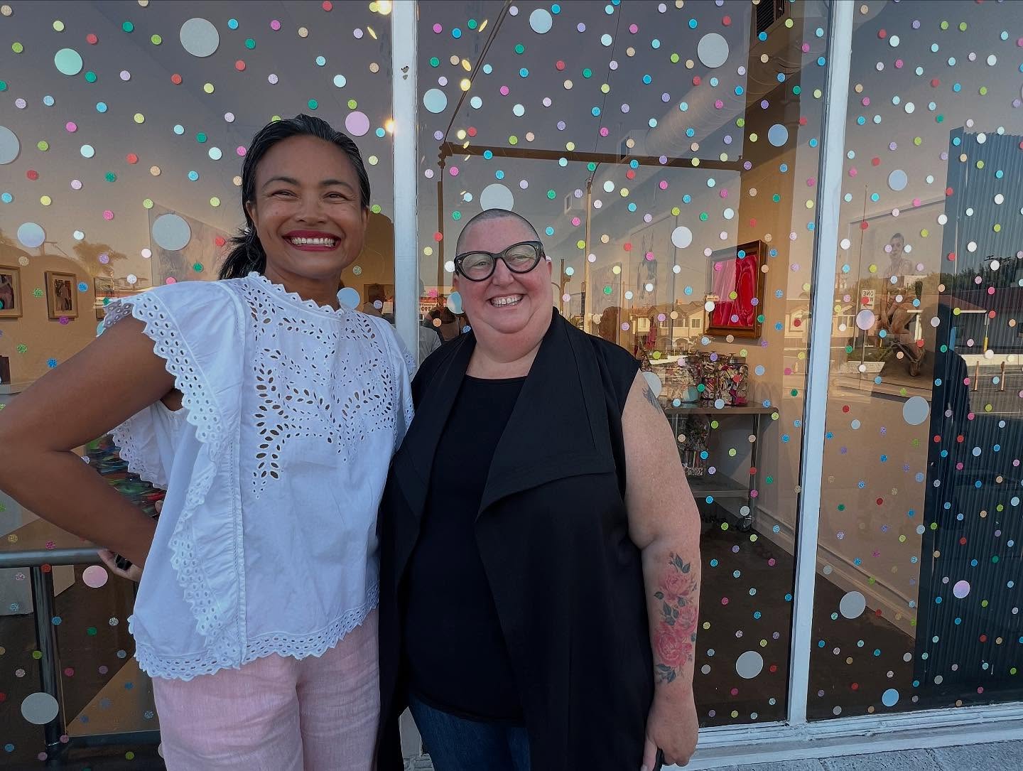 Gallerist Joanna Garel left; artist Kristine Schomaker, right.