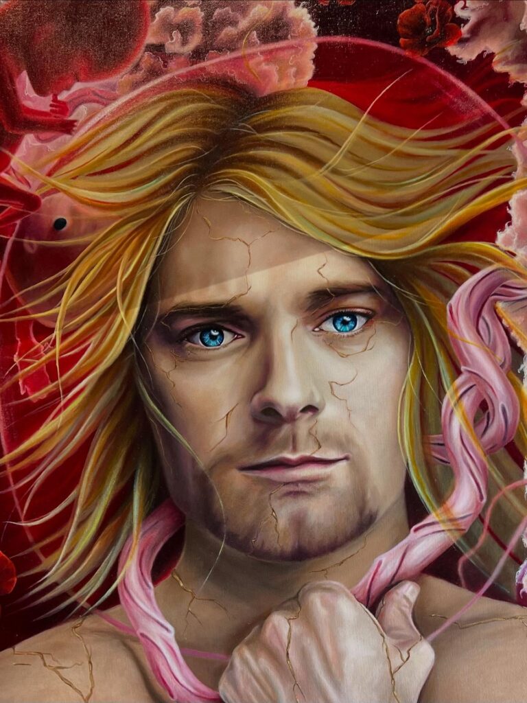 The realism, the heightened use of color, the pop sensibility, the touches of the surreal – Frost’s art is entirely his, entirely wild, and entirely involving, as hyperrealistic as it is dusted with the surreal and serene. It jumps off the wall and engages the viewer with Frost’s mastery of craft, and the dare-I-say zany aspect of some of his subjects. This is pop culture sublime, smooth and sensual, vividly at high volume, if art could shout.