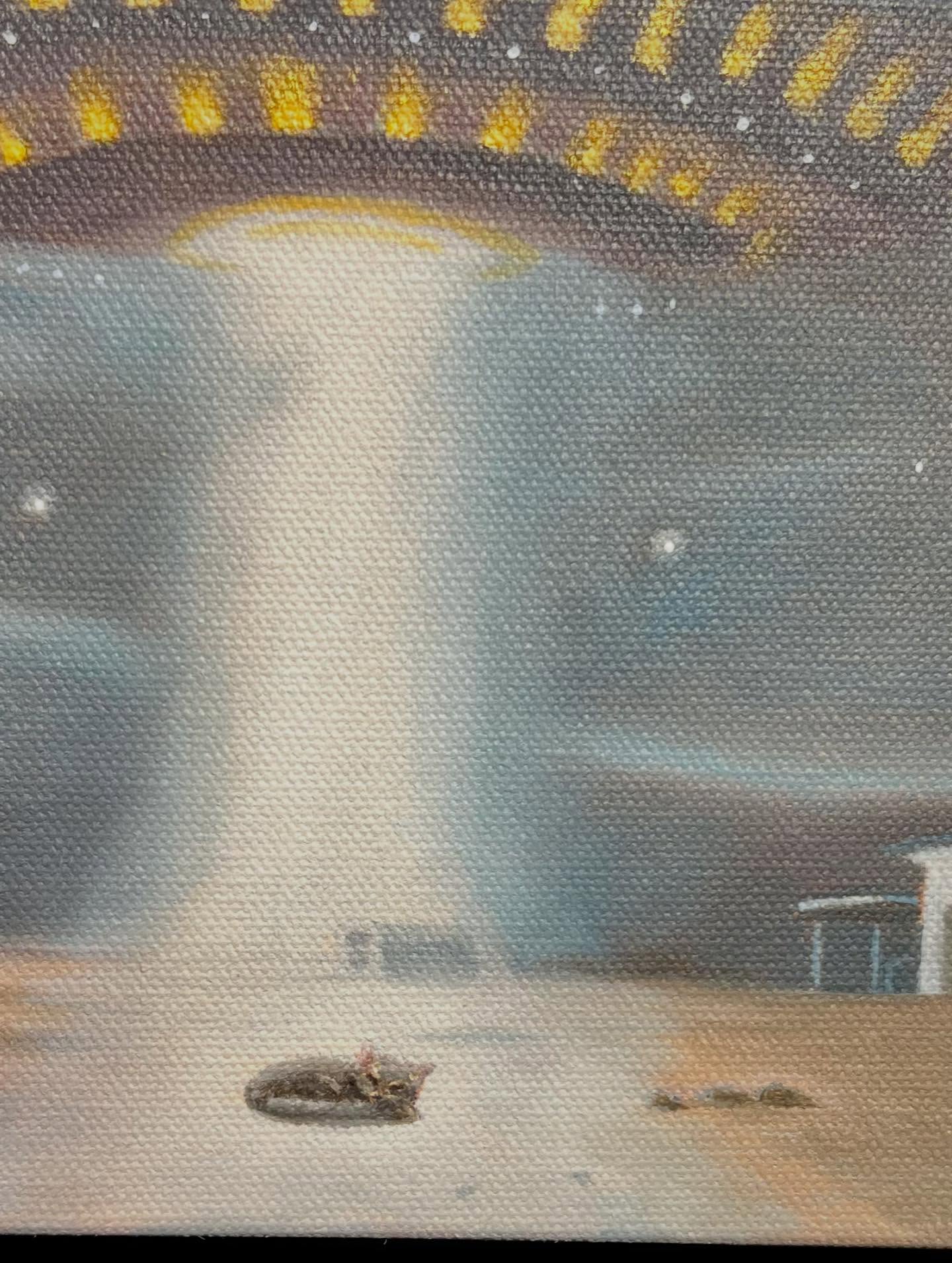 Above, a detail from Interstellar, a personal favorite, with the absolutely perfect kitty under the beam-me-up spaceship.