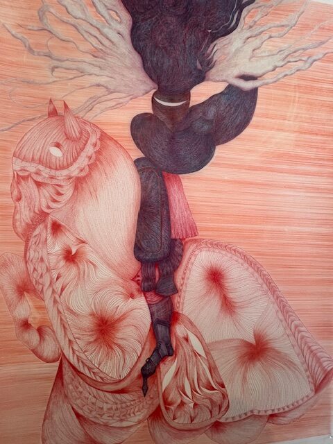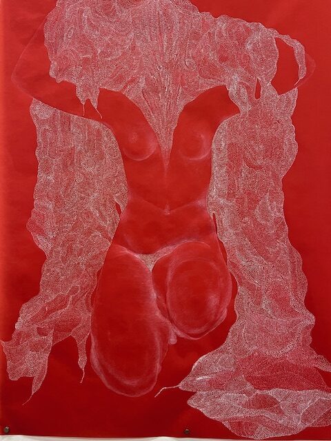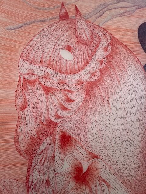 Each of the artists on view are strong — offering bold color, fascinating use of line, and unique mediums, as well as providing a sense of unearthed feeling and mystery-revealed throughout.