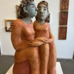 Monica Marks offers her own rewarding clay and resin sculptures as well as found art and collage wall works in vivid shades.