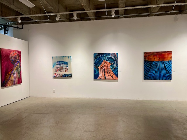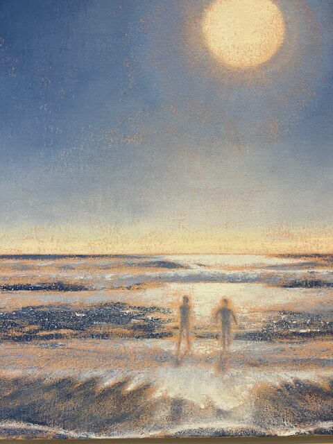 Like Hagar’s work, Rick’s is intensely personal and created in a consolidated time period; in her case, created entirely in the fraught 8-month time period following the January firestorm in the Pacific Palisades and Malibu. Rick’s work is the calm in the firestorm, an immersion of recovery, a peaceful protest against the shocking aftermath of the devastating blaze. Like a moment of held-breath, a captured meditation, the work exudes a calm resilience in atmospheric paintings which also reflect on the inherent beauty within even moments that are most uncertain.