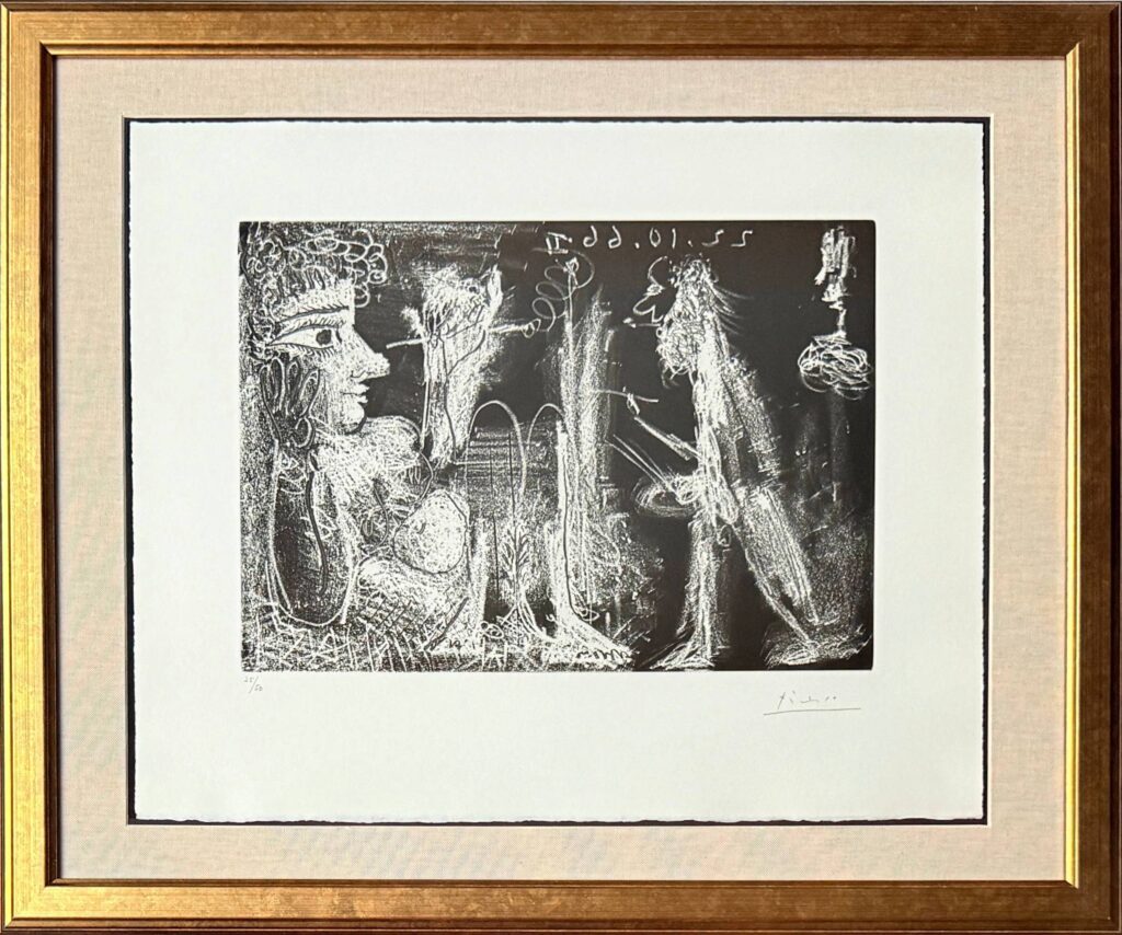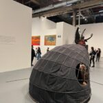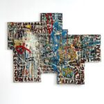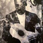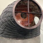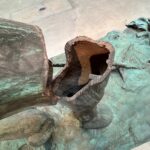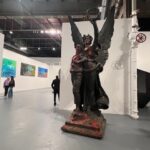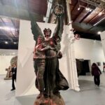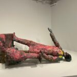 In 1921, Charlie Keck created a statue of “Stonewall” Jackson upon his trusty steed known as “Little Sorrel” heading into battle, sword raised. Exactly one hundred years later, the artist Kara Walker was deeded this decommissioned statue and was allowed to deconstruct and reconfigure it. Walker’s “Unmanned Drone” is displayed at The Brick alongside incisive text, her collages and drawing, and process pictures of the complicated dismembering of the original statue. The resulting sculpture, an amalgam of disjointed elements, is like a three-dimensional collage. Instead of being epic, though it is quite impressive in scale, Walker’s version uses the elements to tell a story of defeat, tiredness and destruction evident by the general’s arm and sword now dragging forlornly on the ground. Cut into these pieces, the viewer can see the hollow inner core of legs, arms, bodies which seems like a timely metaphor – hard metal outside but hollow inside like a rotten apple. Walker’s shockingly contemporary title instantly conjures up the current war in Ukraine that is fought by hundreds of unmanned drones daily, raining down destruction on largely civilian populations. Perhaps this is a nod to the drumbeat of endless wars, that while automated still results in ruin.