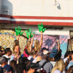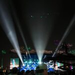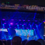 With full darkness descended on the astroturf field of the Hightide main stage, the viewing area was body to body, and this was the one concert in which we were viewing close to the light booth rather than at the front. It was a vantage point from which we could see the folks in the VIP sections and sponsored and bar spaces from Jack Daniels to Skechers viewing from the elevated sidelines, and beyond them, the balconies of the Redondo Beach Sonesta Hotel jammed with viewers as well.