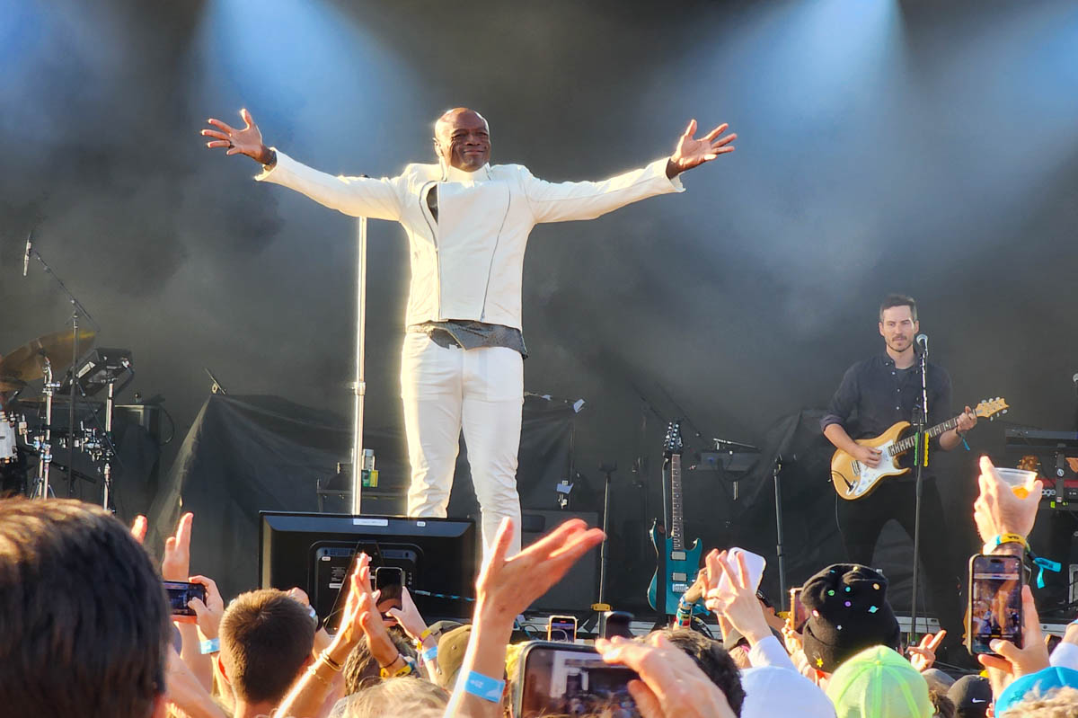 Seal was a huge draw on the High Tide stage, and as sunset beckoned, this was probably the first fully packed venue. Seal remains a wildly engaging performer, bounding onto stage in a white ensemble, the jacket to which he quickly removed as he launched into hits like “Kiss from a Rose” replete with red lights and projected falling petals, and “Crazy.”