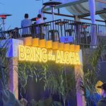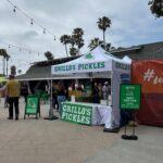 Kinecta Credit Union handed out free ice cream truck treats; Grillo’s pickles passed out free tasty dills with a dot of dill dressing along with pickle-logo baseball caps in exchange for “riding the pickle” the equivilent of a fun kid’s pony ride outside shopping centers past, rather than a bucking bronco ride. We won a purse at a Dakine-sponsored promo game booth, tried a bag of delicious HIppeas – nacho flavored chickpea puffs,  enjoyed a video walk through of surf sponsored by Gray Whale Gin, and posed for selfies at designated spots that ranged from giant Beach Life surfboards and deck chairs to a neon-lit arch telling us to “Bring the Aloha.”