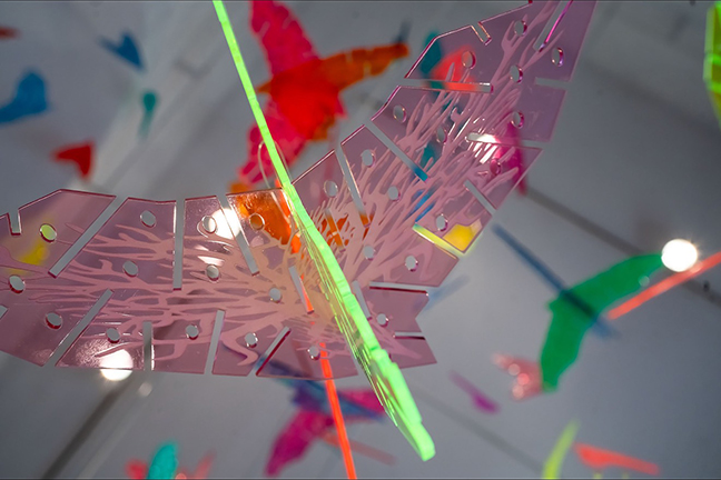 Also evoking a sense of heritage and cultural reimagining is artist Diane Briones Williams in her The Precarious Life of the Parol, where mixed media and textile works examine not just sculptural weavings but the memories and past history of her Filipinx identity.