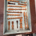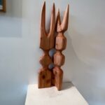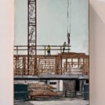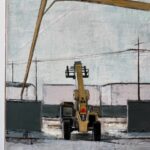 Chalavie has a mix of perfect, beautifully wrought wood work such as “Tool Kit for the End of the World,” and “Totem” as well as intricately detailed images of construction equipment, and in “Stack,” a pile of boards that look as if the painted work could be as dimensional as her sculptures.