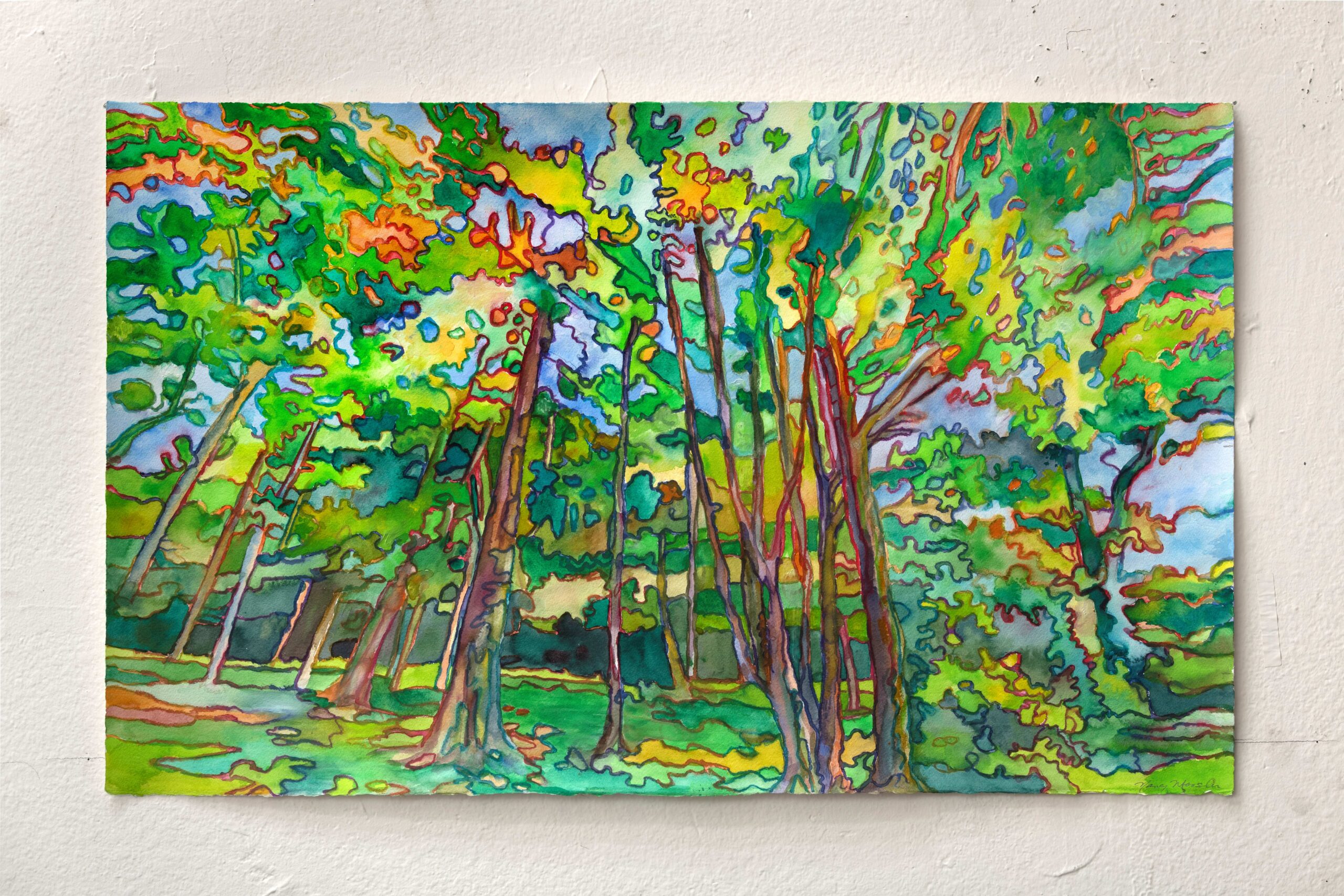 Nancy Mooslin , Ireland, Annaghmakerrig Trees, Gaelic Hymn by Ina Boyles, watercolor, 18 x 30 inches, 2024 – Copy Posted on February 10, 2026 by Diversions LA