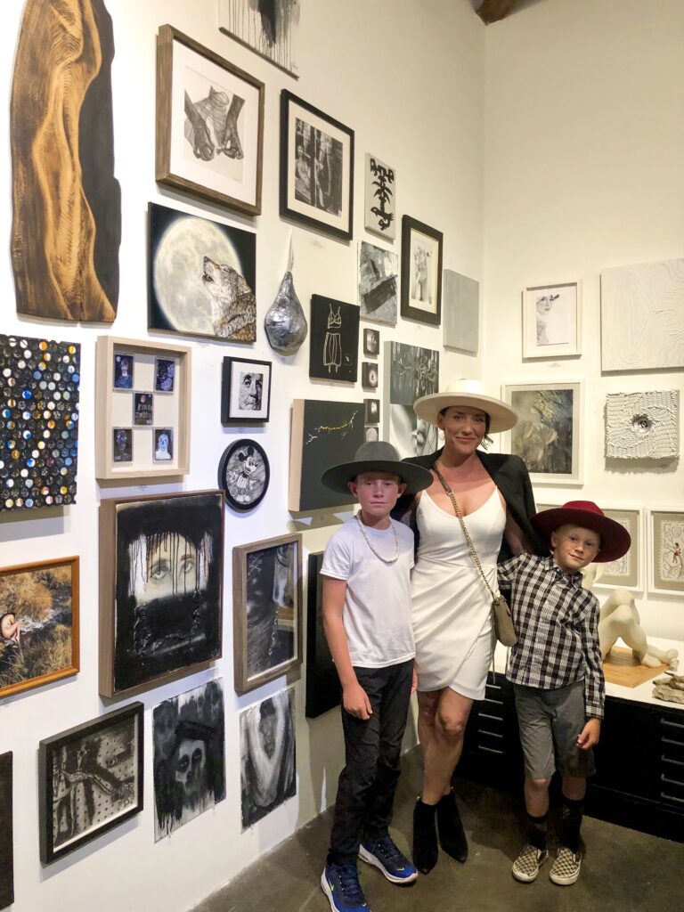 It’s the 10th Annual Spectrum Gestalt and we arrive at Bergamot Station and watch as guests spill out of bG Gallery with an energy and crowd that is just as colorful as the exhibition. Many of the attending artists are dressed in their respective color palette and I am no exception. Joined by my two young boys, I made certain to have a serious talk before entry. You know, the Do Not Touch Anything talk, matched with the No Running in the Gallery talk. My intent eyes linger affirmingly on the littlest, spunkiest of the duo and is followed by a required “Yes, Mom,” before we proceed. We work our way through the crowd and into the gallery and are immediately hit with powerful waves of color. I look to my 10-year-old and find him wide-eyed, jaw ajar. We pause and allow the chromaticity to settle in.