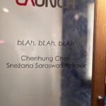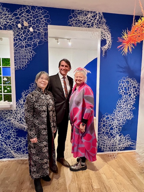 Above, curator Chen, attendee Betty Brown, artist Petrovic