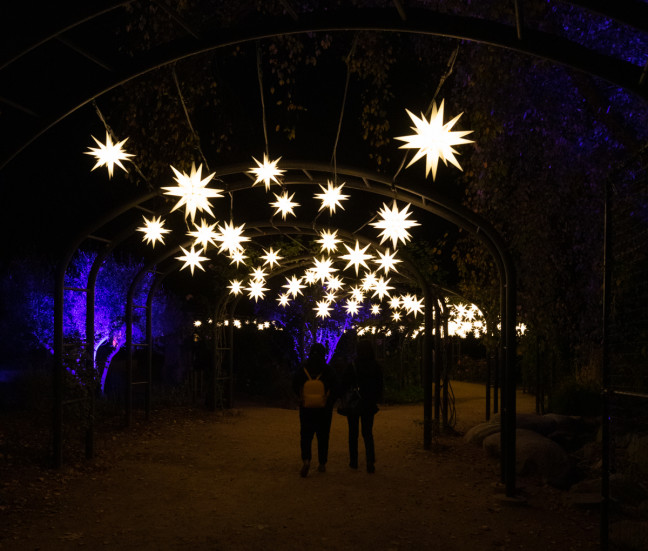 Some offer interactive experiences – kids and adults alike can create musical notes and change colors at the Symphony of Trees, and adjust light colors by spinning at handle at lakefront Lightwaves section. Other areas are more quietly elegaic, beautifully alight set pieces that stir the imagination.