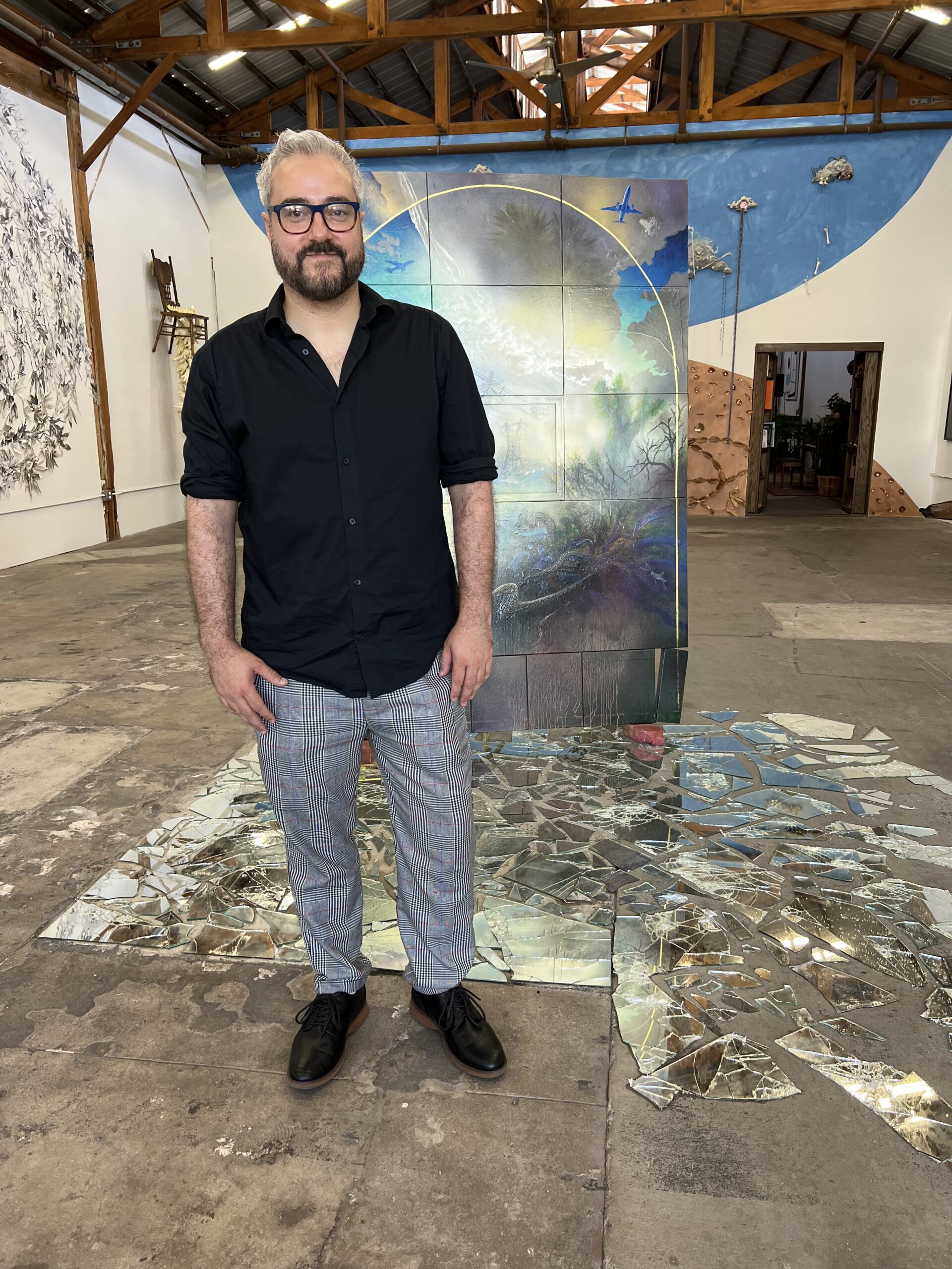 There is both the mystic and the mythic in Where Earth Becomes Aether, curated by Jason Jenn and Vojislav Radovanovic now at Wonzimer in DTLA through June 30th. Viewing this immersive show is a spiritual experience, both literally revealing the Zen-like soul of the art, and in its cathedral-like presentation.